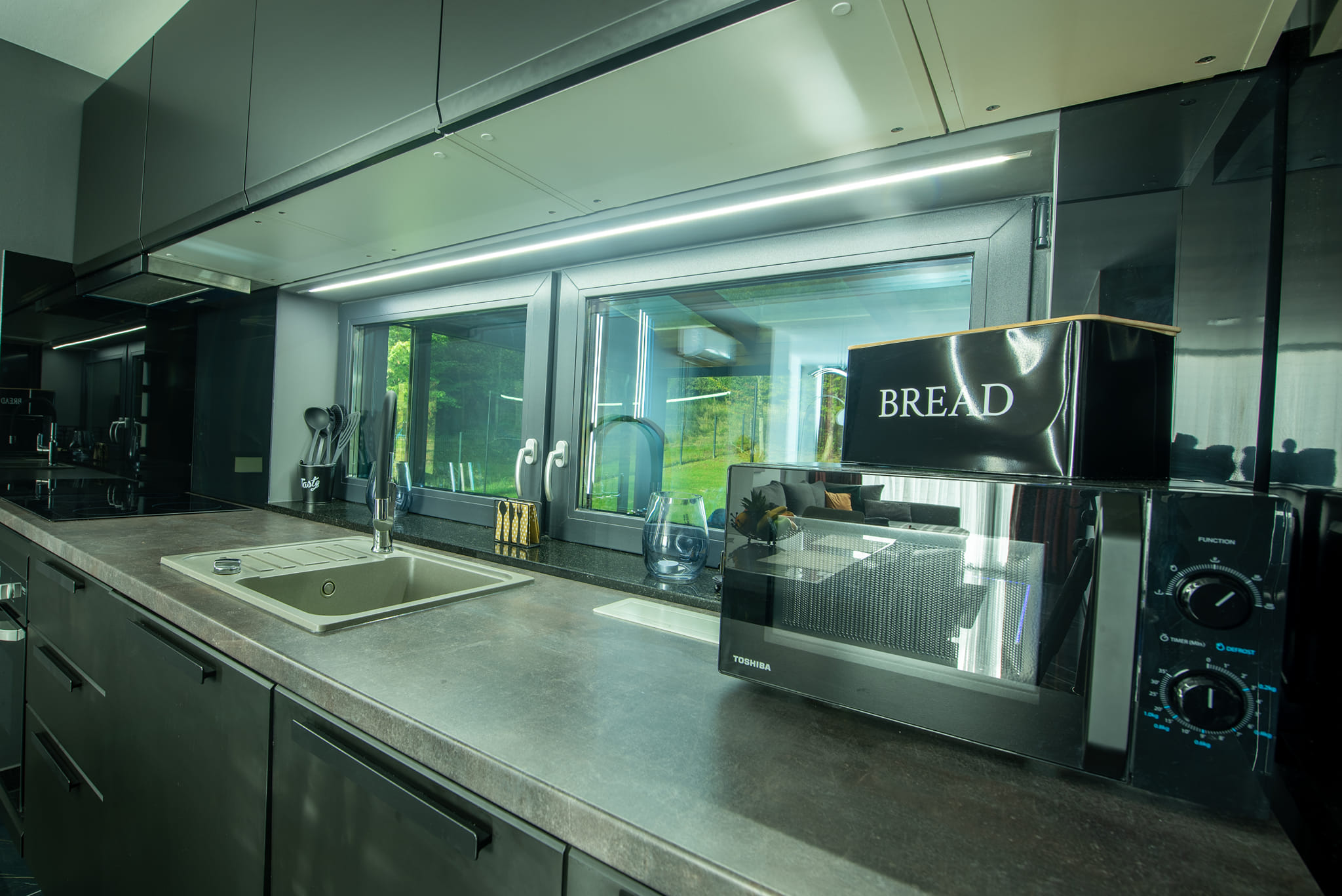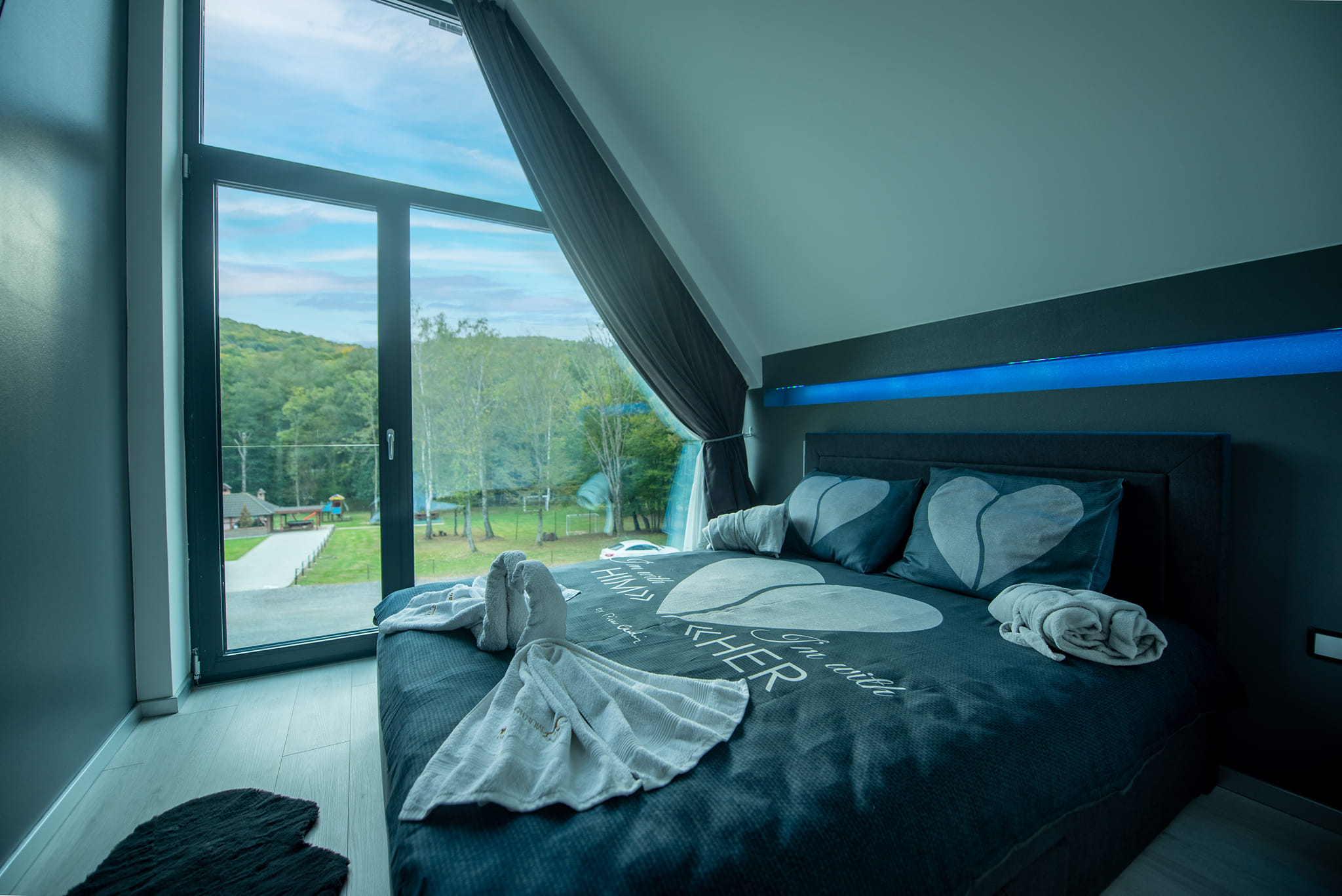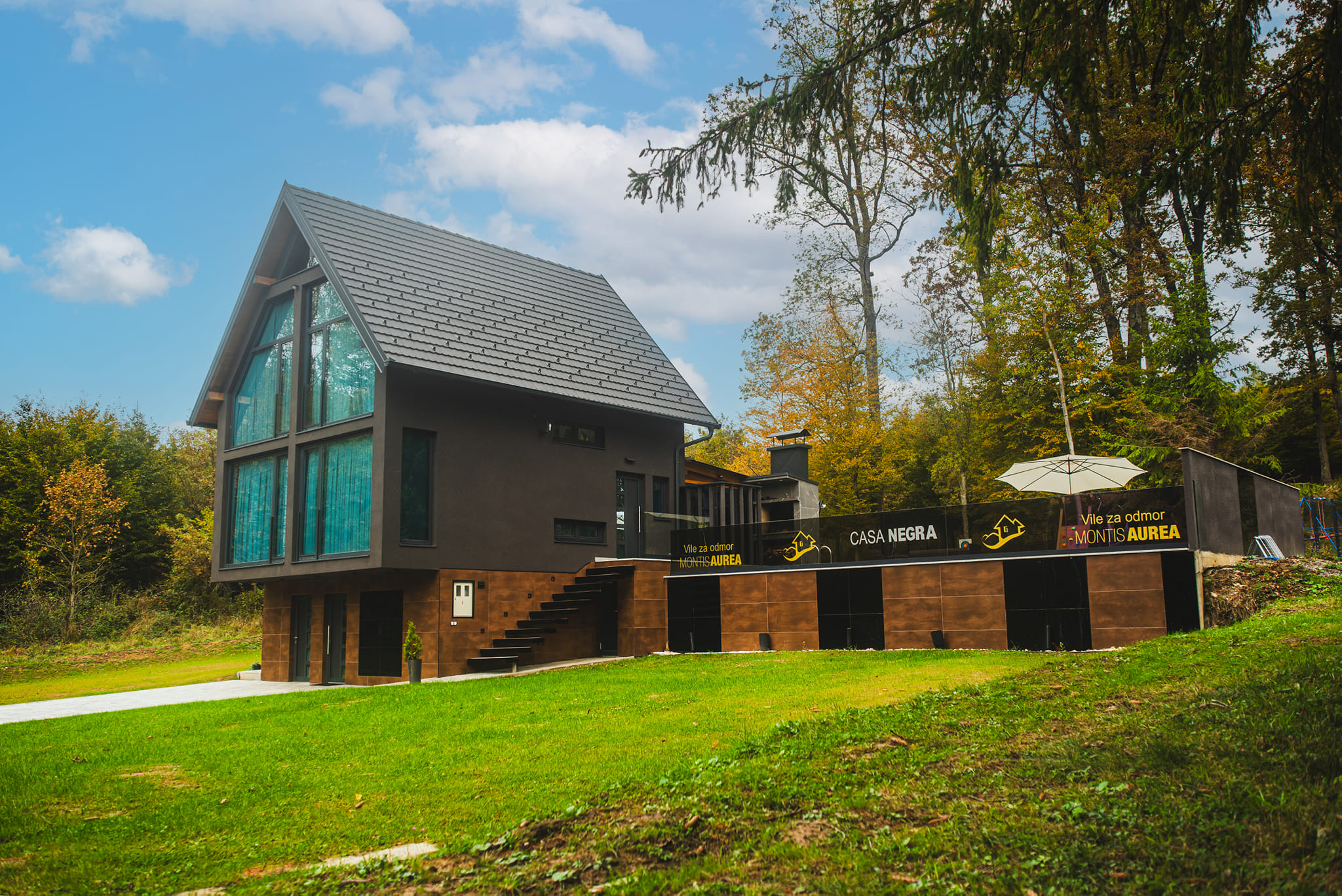 Casa Negra also includes an external enclosed glass room with a truly unique view. The roof is designed to allow you to enjoy the view of the stars. Additionally, there's table football, darts, and more.