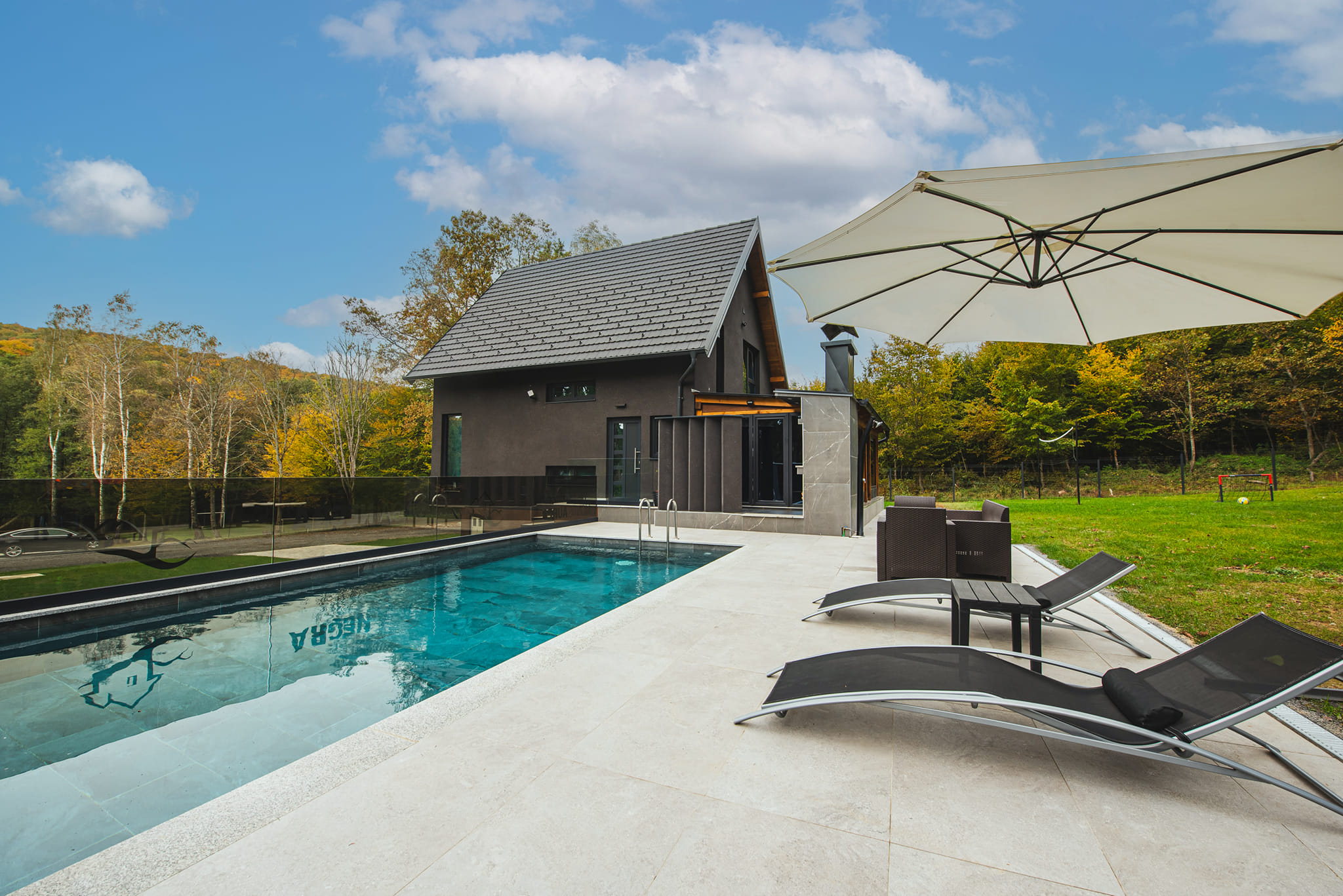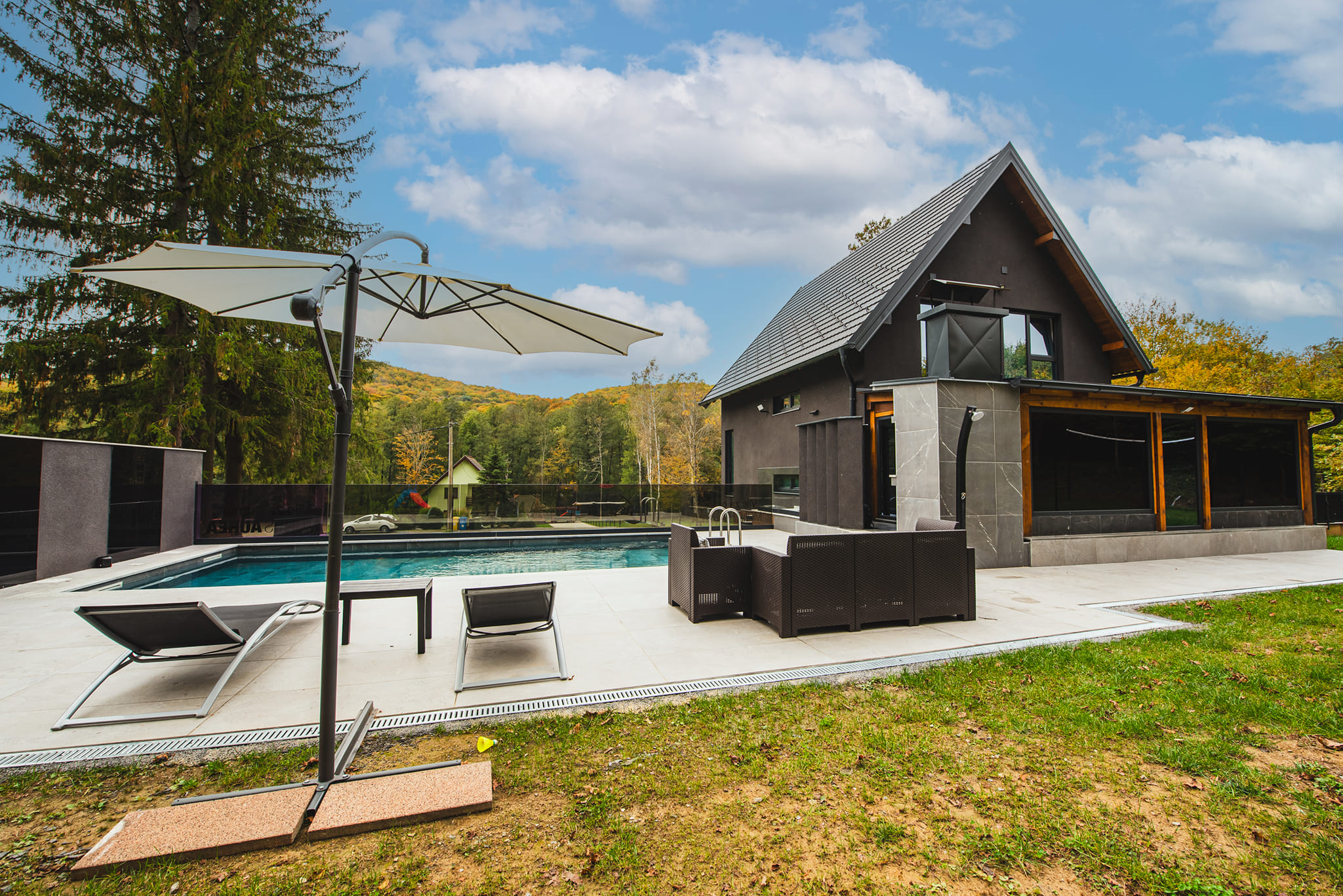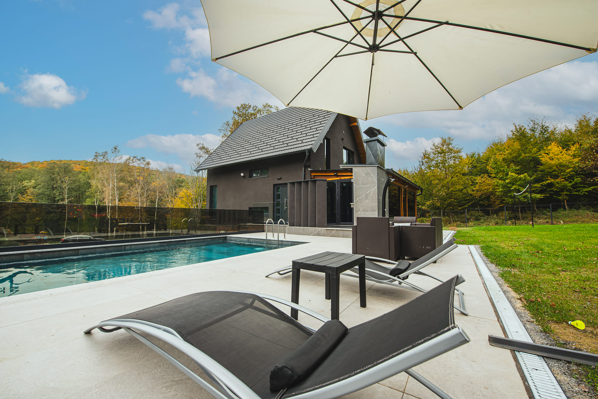 During the summer, you can enjoy the large open heated pool (32m2), while in the winter months, you can experience top-notch relaxation and moments of tranquility in the private wellness oasis with a sauna and a jacuzzi for 6 people, all with a unique view of untouched nature.